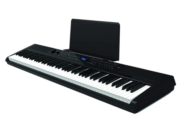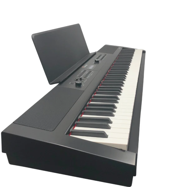 An 88-key full-size digital piano with semi-weighted “hammer soft-touch” keys for a more realistic piano feel. It offers 130+ built-in instrument voices, including a rich three-layer grand piano sound, and 99+ rhythm/accompaniment styles for versatility in music genres. Includes 2-track recording, a built-in metronome, USB-MIDI connectivity, headphone jack, and mic input with volume control — ideal for both practice and creative compositions. Has reverb & chorus DSP effects, supports duet & lesson functions, and includes sustain pedal, music stand and adapter — ready to play out of box.