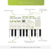 A compact and lightweight 32-mini-key keyboard perfect for kids or beginners. It features 100 built-in tones, 50 rhythm patterns, and 10 preset songs for fun and learning. Offers 32-note polyphony, a metronome, and a reverb effect for richer sound. Includes octave shift and transpose controls, LCD display, stereo mini-jack for headphones, and runs on 6 AA batteries or 9.5 V adapter.