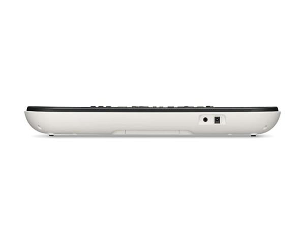 A compact and lightweight 32-mini-key keyboard, perfect for kids or beginners. It features 100 built-in tones, 50 rhythm patterns, and 10 preset songs. Includes performance functions like octave shift, transpose, metronome, and reverb. Supports 32-note polyphony and has a clear LCD screen. Comes with stereo mini headphone jack, and can be powered via 6 × AA batteries or 9.5 V AC adapter.