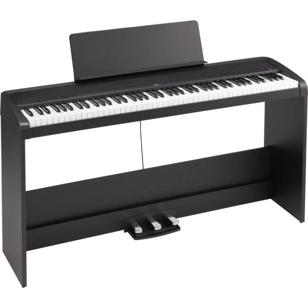 The B2SP features an 88-key Natural Weighted Hammer (NH) action keyboard for a realistic piano touch and responds sensitively to dynamics. It offers 12 high-quality onboard sounds including several grand piano tones, electric piano, organ and strings, with up to 120-voice polyphony for clean, full sound. Built-in stereo speakers with amplifier output deliver rich audio, while USB-MIDI, audio-in and headphone output give connectivity for recording or silent practice. The package includes a dedicated stand, three-pedal unit (damper, soft, sostenuto with half-pedaling), music rest and AC power—making it a complete home piano setup straight out of box.