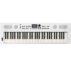 A 61-key, velocity-sensitive keyboard powered by ZEN-Core sound engine, with 1,154 built-in tones and 74 drum kits. Offers 203 preset rhythms, a 304-pattern chord sequencer, and up to 256 user scenes for live performance. Has built-in stereo speakers + passive radiators, Bluetooth 5.0 (audio & MIDI), USB-C for audio/MIDI, mic input with vocal effects (auto-harmony, voice transform), and an onboard WAV/MP3 recorder via USB. Powered by AC adapter or 8 × AA batteries, with approx. 5–6 hours of battery life.